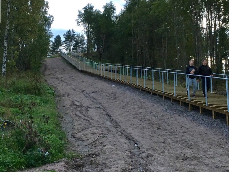 Lenkin jälkeen Hilla yllätti meidät vielä laittamalla kaikki tekemään pari mäkivetoa. Jalat hapottivat mukavasti huipulle päästyäni. Mäki ei ollut mikä tahansa mäki, vaan varmaan yksi jyrkimmistä, joita alueelta löytyy. Vieressä kulki uutuuttaan hohtavat portaat, jotka muutama porrastreenin tekijä olikin jo löytänyt.