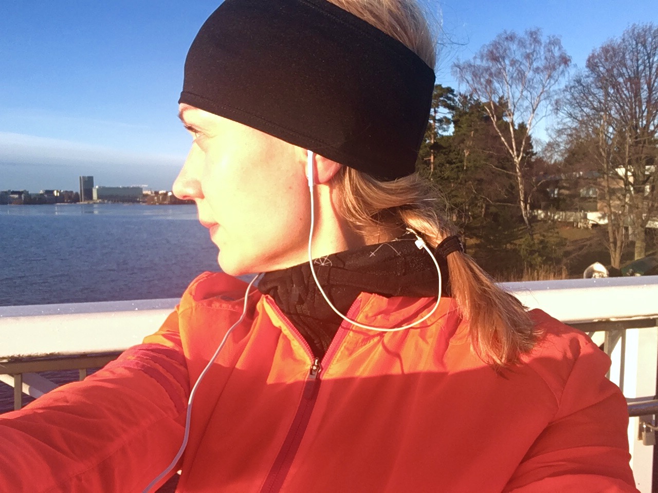 Yllä olevaa kuvaa katsoessa tulee mieleeni huoleni puhelimen varastamisesta, kun laitoin sen automaattilaukaisulla ottamaan kuvaa juoksustani autiolla tiellä. Puhelin (ja rahat) vietiin sitten muutaman päivän päästä käsilaukustani kävellessäni vilkkaalla kadulla.