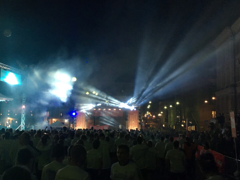 Asetuin lähtöryhmäni 3A:n perälle, koska tällä kertaa ei ollut kiire. Lähtölaskennan jälkeen lähdin matkaan joukon mukana. Pyroteknikot laittoivat parastaan: kipinät tummaa taivasta vasten häikäisivät mutta myös lämmittivät. Alkumatkan ajan tarkistin kellosta, että kilometriajat pysyivät kuudella alkavissa lukemissa. Juoksu oli helppoa ja rentoa, eikä mihinkään sattunut.
