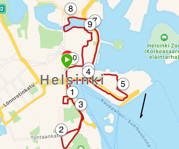 Jarru pohjassa juokseminen alkoi tuntua tylsältä ja otin riskin. Laskin, että kiristämällä tahtia ja juoksemalla jälkimmäiset viisi kilometriä alle kuuden minuutin kilometriaikoja pääsen maalin alle tunnissa. Rennon alun jälkeen oli helppoa lisätä vauhtia. En voi myöskään vähätellä kanssajuoksijoiden merkitystä, sillä aina löytyi joku vähän nopeampi, jota seurata.