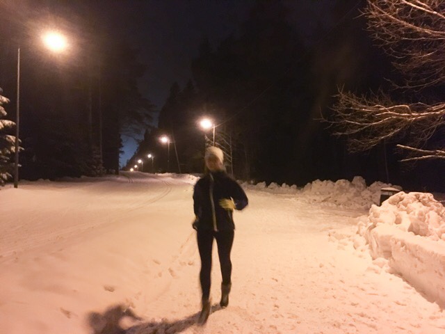 Hyvä lämmittely kuuluu asiaan, kun juostaan kovempaa. Alkuvuonna seuranamme ovat olleet myös kovat pakkaset, sillä harjoitukset pidetään ulkona. Kylmimmillään tammikuussa oli yli kymmenen astetta pakkasta.