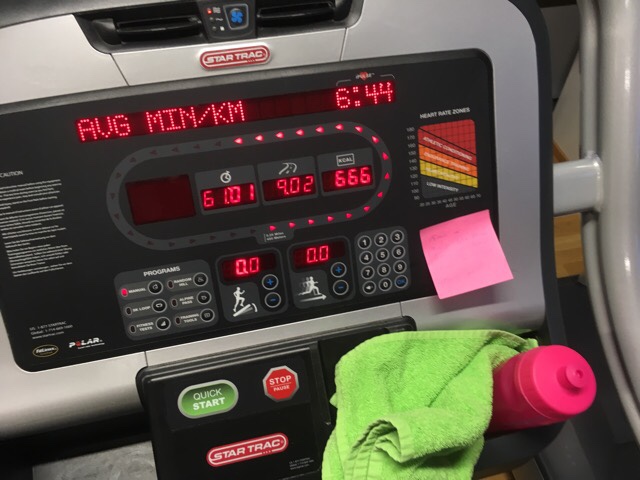 - Lauantai: Viikon toinen vauhtikestävyystreeni. Kuten muutkin juoksutreenit ohjelmassa, myös tämä oli määritelty keston ja sykkeiden mukaan. Menin juoksemaan jälleen kuntosalin juoksumatolle. Siinä on helppo nappia painamalla kasvattaa maton pyörimisnopeutta ja seurata kellosta sykettä. Juoksin ensin 15 minuutin alkuverryttelyn, sitten 10 minuuttia sykkeellä 150-160, 10 minuuttia sykkeellä 160-165, 10 minuuttia sykkeellä 150-160 ja loppuun vielä 15 minuutin verryttely. Viikon toinen vauhtikestävyystreeni oli tehty, eikä sekään niin pahalta tuntunut.