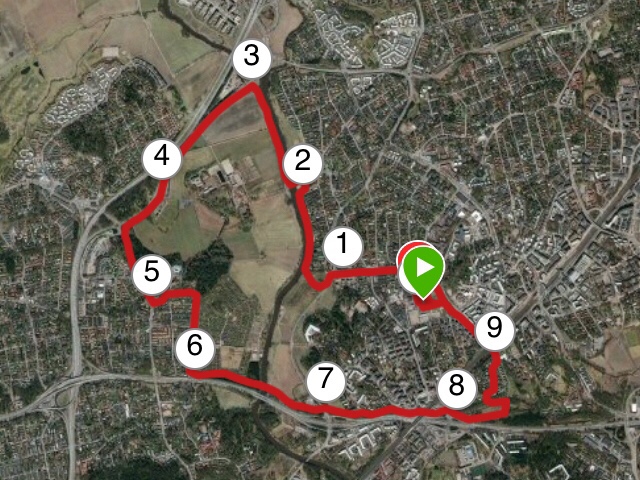 Kahdeksannen kilometrin keskivauhtini oli 5:06 min/km. Yhdeksännellä kilometrillä oli melko paljon mutkia, käännöksiä ja nousuja. Vauhti laski 5:26 minuuttiin/kilometri. Tunsin, että minulla on vielä paukkuja ottaa loppukiri, ja viimeinen kilometri kulki 4:40 min/km. Kisa päättyi Pukinmäen yleisurheilukentälle, jonka rataa kiersin viimeiset sadat metrit.