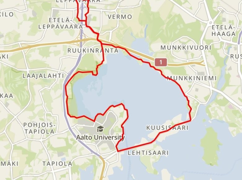 Pelkäsin, että pitkän lenkin juokseminen tauon jälkeen olisi raskasta. Ehdin kuitenkin monta kertaa juoksun aikana sanoa lenkkikaverilleni, että jaksan yllättävän hyvin. Sykkeeni pysyi normaalissa peruskestävyyslenkin sykkeissä ja oli 140:n pinnassa. Lenkin keskivauhti oli 6:21 min/km.