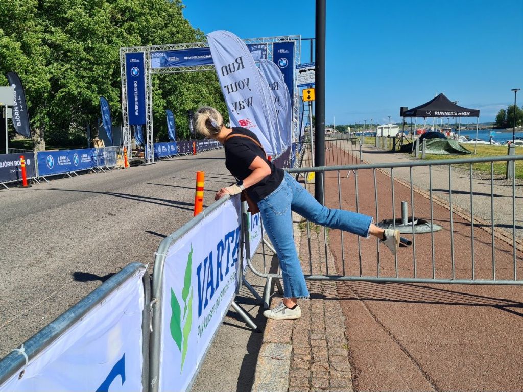 Raitiovaunussa vastapäätäni istahti kaksi muuta tapahtumaan matkalla ollutta juoksijaa. Lyhyen raitiovaunumatkan aikana ehdimme puida tavoitteet, päivän sään ja aiemman juoksuhistoriamme. Emme tunteneet toisiamme entuudestaan, mutta juoksu yhdistää. Pienessä kisajännityksessä auttaa, kun voi jutella jonkun kanssa.