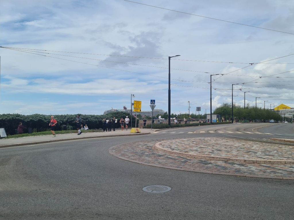 Kalasataman jälkeen tapahtui seuraava outo asia. Kelloni näytti, että juoksisin alle 4 min/km. Se ei mitenkään voinut pitää paikkaansa. Sykkeeni pysytteli edelleen hieman yli 150:ssä, kuten se oli pysytellyt koko matkan. Olin uutisista lukenut, että Itämerellä on nyt paljon GPS-häirintää. Luulen, että syynä lukemien epätarkkuuteen olivat kuitenkin korkeat rakennukset, joiden välistä reitti kulki. Kelloni tiedot väittävät edelleen, että juoksin puolivälissä matkaa yhden kilometrin 4:30 minuutissa.