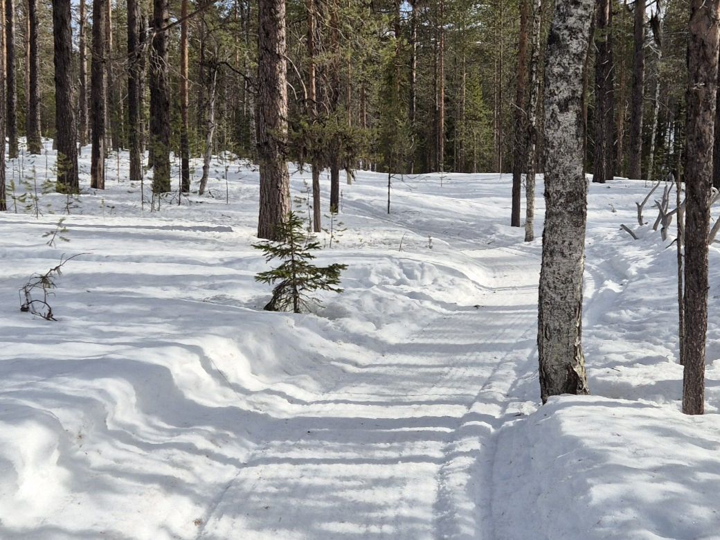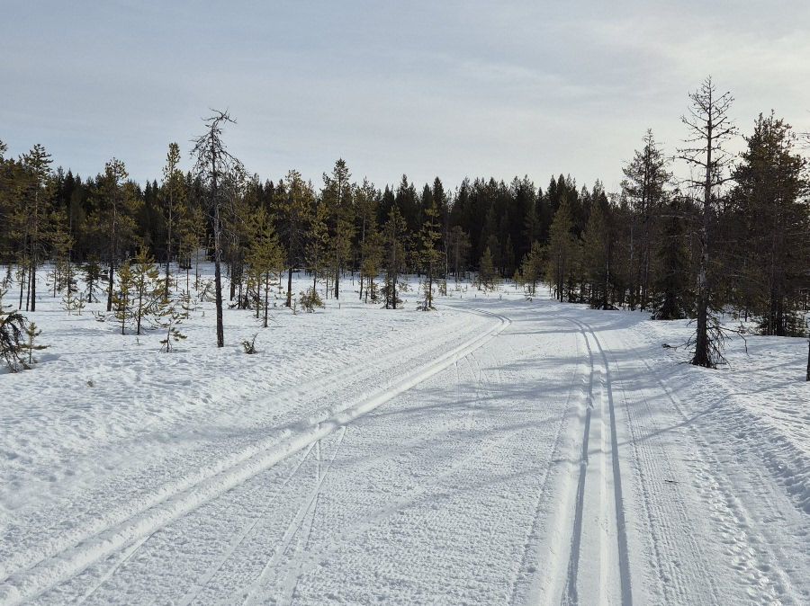 Juuri ajettu latu vei minua eteenpäin. Olin edellisinä vuosina hiihtänyt samoja reittejä, enkä tarvinnut karttaa. Lunta tosin oli aikaisempia vuosia vähemmän, minkä vuoksi maisemat näyttivät paikoin erilaisilta kuin yleensä. Myös laduilla lunta oli paikoitellen vähän, mutta riittävästi hiihtelijän tarpeisiin.