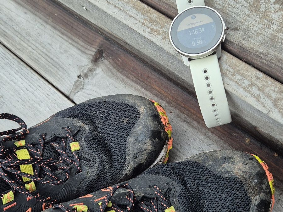 Palasin samaan kotini läheiseen metsään keskiviikkona. Tällä kertaa juoksin pidemmän lenkin. Suunnistin ilman karttaa ja vain kerran jäin pyörimään ympyrää. Senkin huomasin vasta, kun kotona tarkastelin urheilukellon sovelluksesta kartalle piirtynyttä viivaa. Ennen juhannusviikon äkillistä polkujuoksuinnostusta olin juossut Asicsin polkujuoksukengilläni huhtikuussa Ylläksellä. Nyt kenkien pohjakuvio lätsähteli mustaan mutaan ja pesusienen lailla vettä itseensä imeneisiin mättäisiin. Sain uskottavan kurakerroksen polkujuoksukenkiini.