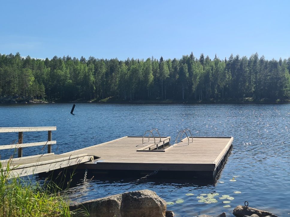 Syömisen ohella kortin pelaaminen ja uiminen riittivät muiksi aktiviteeteiksi. Säikäytin laiturin luona uiskennelleen ahvenparven hyppäämällä veteen. Ensin olin tietenkin tarkistanut, että laiturin päässä on riittävän syvää. Jalkani eivät edes hypätessä osuneet pohjaan.