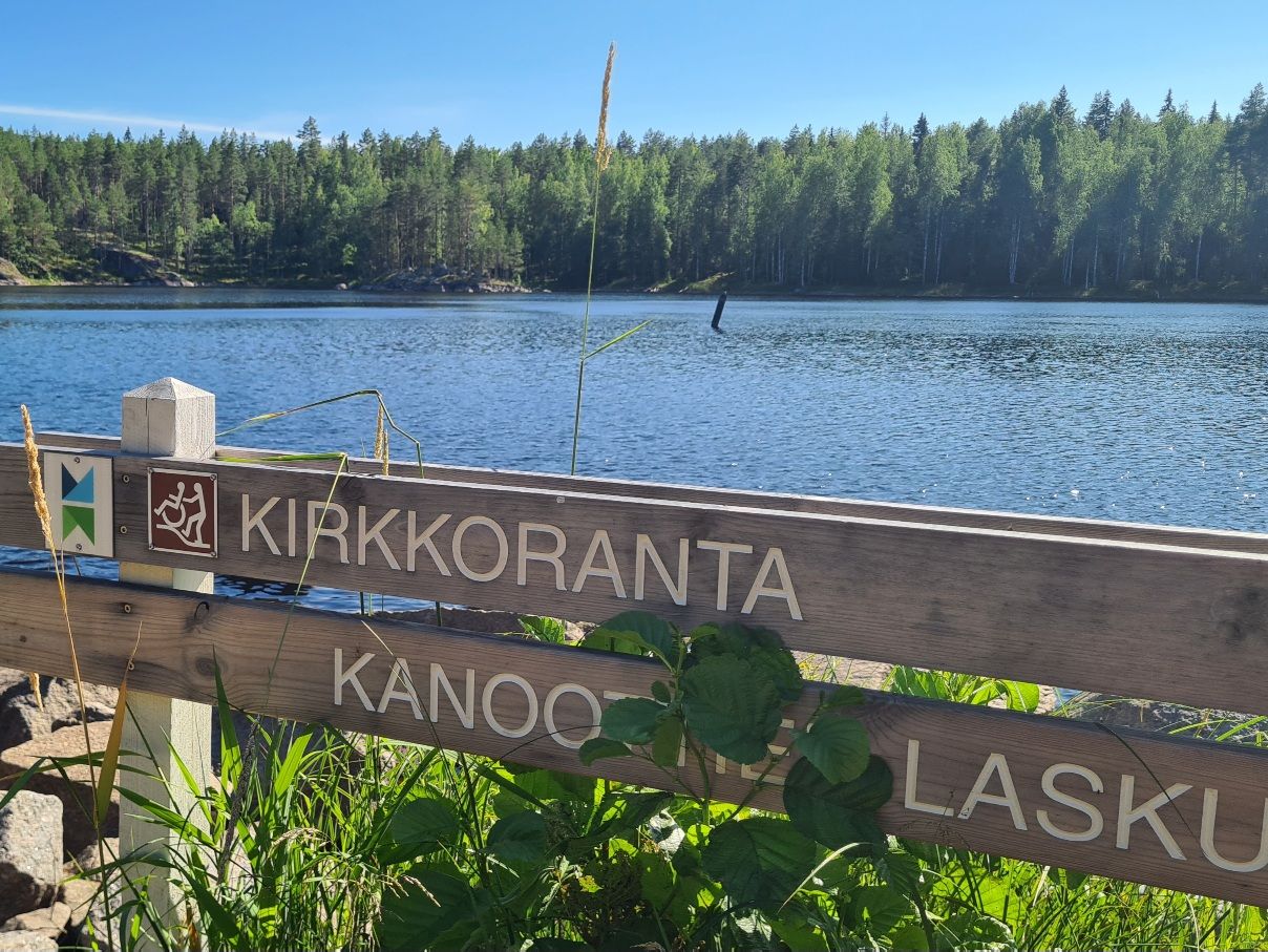 ”Parasta kesää”, totesi vanhempi mies, joka auttoi työntämään kanoottimme vesille Kirkkorannassa Enonkoskella. Kirkkorannassa on myös laituri, jolta melontaretken olisi voinut aloittaa, mutta olimme lastanneet kanoottimme rannassa.