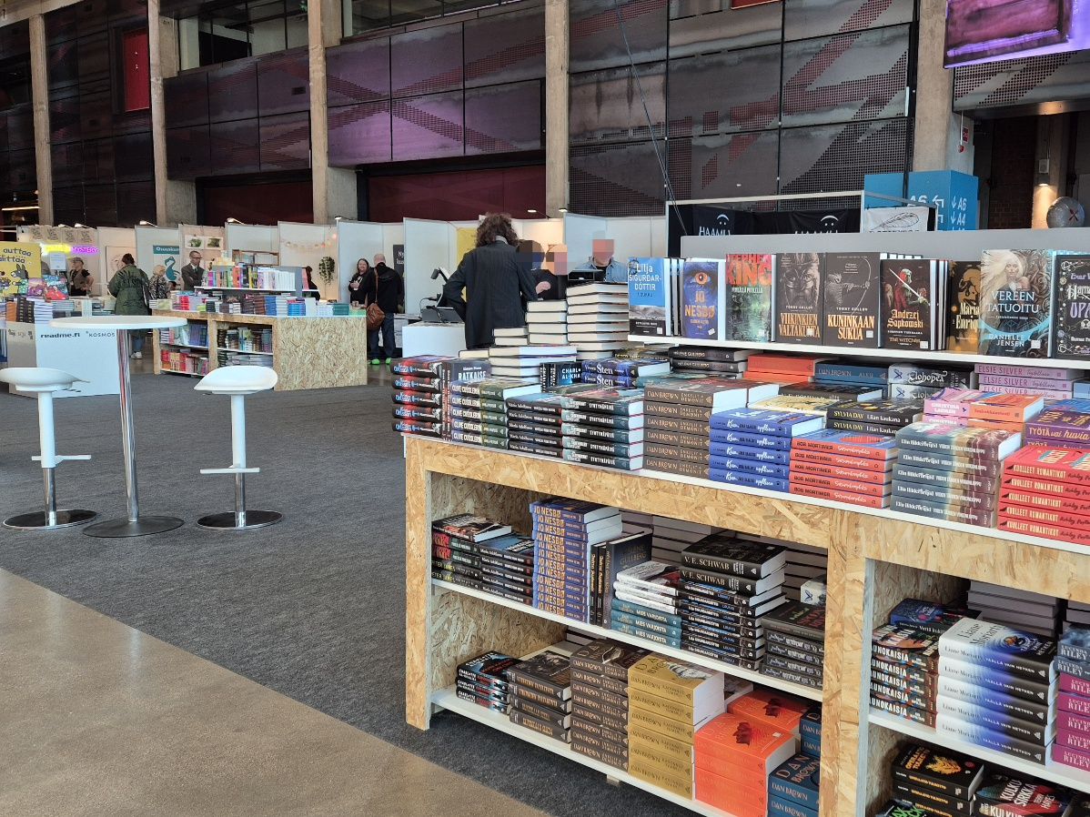 Minun ei varmaan tarvitse teille kertoa, millainen kirja on. Että siinä on joko kovat tai pehmeät kannet, paperisia sivuja välissä ja tekstiä paperilla. Turun Kirjamessuilla kirjoja oli paljon. Oli kasapäin suosikkipokkareita, kiiltäväkantinen uutuuskirja arvokkaasti esillä ja nuhjuisempia moneen kertaan luettuja niteitä antikvaariosaston hyllyssä. Sieltä tein messujen ainoan kirjahankinnan.