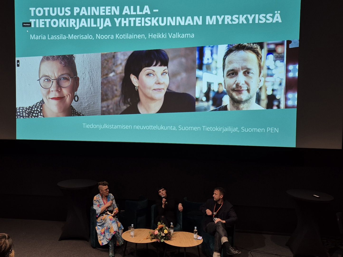 Kun ääneen pääsivät kirjailijaliiton puheenjohtaja Ville Hytönen, kirjailija Kari Angeria ja runoilija Tapani Kinnunen, sai tekoäly huutia. Kinnunen peräänkuulutti alkuvoimaa, Hytönen oli huolissaan kirjailijoiden saamatta jääneistä korvauksista ja Angeria väläytti kansallisten tekoälyjen tarvetta. Seurasi synkkiä totuuksia. Tekoälyä on opetettu kirjailijoiden teksteillä ilman, että kirjailijoille on maksettu siitä korvausta. Rahat tuotoksista käärivät amerikkalaiset pörssiyhtiöt. Kun tekoäly on opetettu tietynlaisella sisällöllä, heijastelevat sen tuotokset arvomaailmaa, joka noihin teksteihin sisältyy.