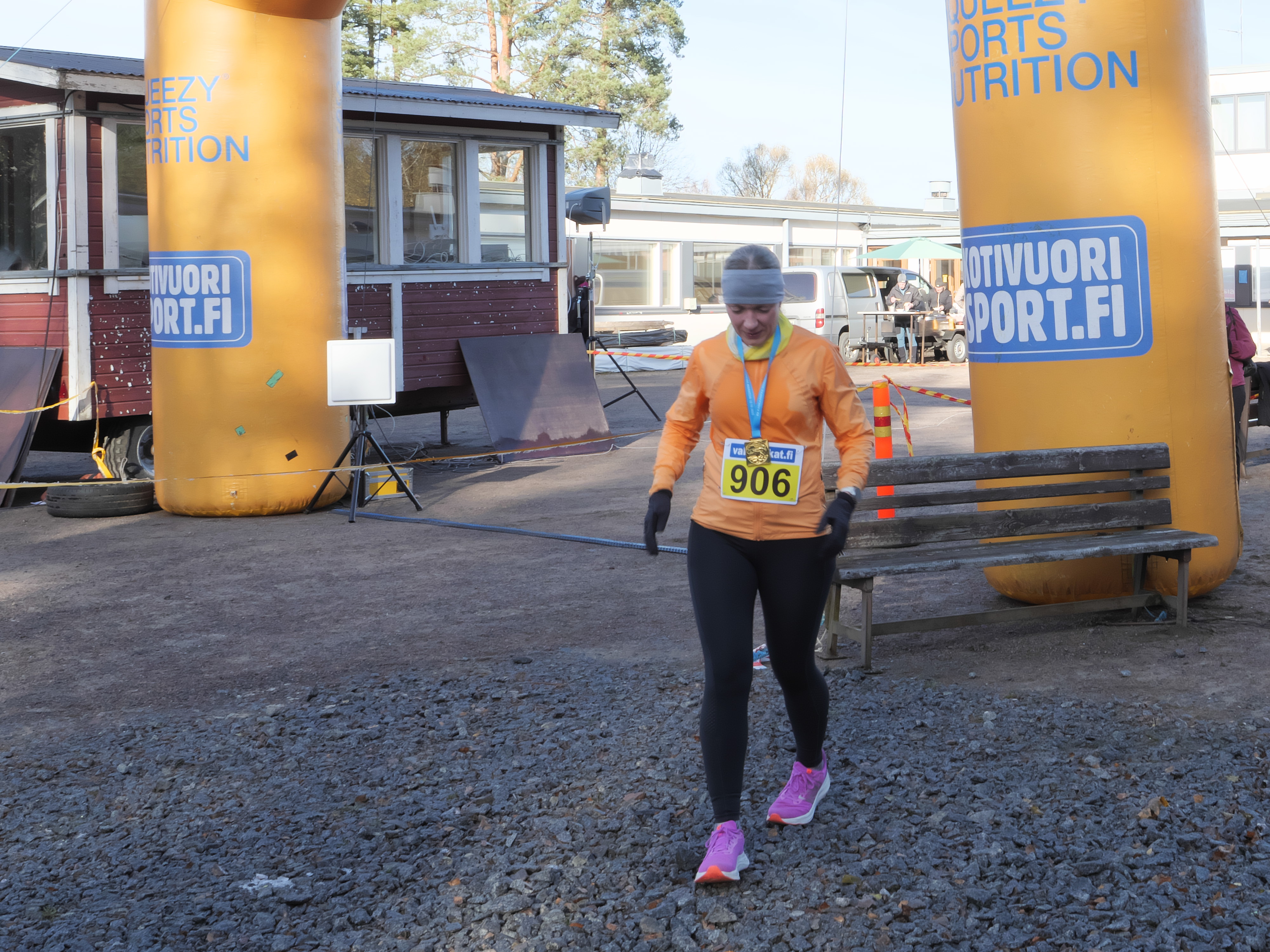 Se, että joku joutuu keräilemään itseään hetken maaliin päästyään, kertoo vain siitä, että juoksija on uskaltanut antaa kaikkensa. Minä olin päättänyt juosta puolitosissani ja sen myös tein. Juoksin reippaasti, mutta en itseäni näännyksiin. Maalissa tarjoiltiin sekamehua, jota otin kaksi mukillista paikatakseni energiavajetta. Sain kaulaani komean juhlavuoden mitalin.