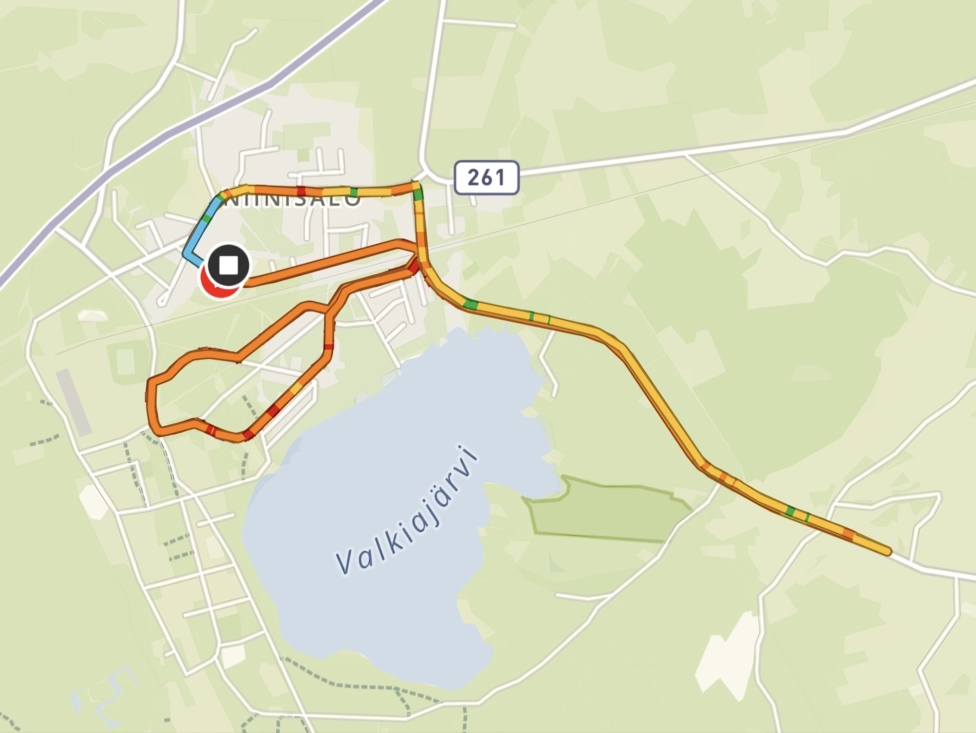10,5 kilometrin loppupuolella ennen kuin maali alkoi häämöttää, reitti kulki Niinisalon varuskunta-alueen luona. Otin vielä viimeisen geelini ennen 18 kilometrin kohdalla ollutta huoltopistettä. Pysähdyin juomaan kaksi mukillista vettä ja jatkoin matkaani. Nyt ei tarvinnut enää yhtään säästellä voimiaan.