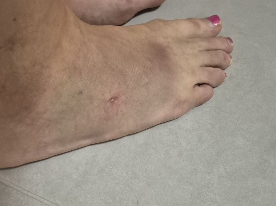 Unohdin koko asian, kunnes pari päivää myöhemmin suihkusta avojaloin tepastellessani huomasin, miten oikea jalkapöytäni oli tummunut ja ihon väri-ilottelun keskellä oli ruhje. Lähetin jalastani siltä seisomalta kuvan lääkäriystävälleni, joka oli ollut mukanani juhlissa. Someen en laittanut mitään, sillä minulle riitti oikean lääkärin mielipide. En kaivannut muita. Hän kehotti seuraamaan tilannetta. Minä seurasin jalkapöydän värin vaihtumista ja tunnustelin juoksemista. Ei tuntunut missään, joten juoksin puolimaratonin suunnitellusti.