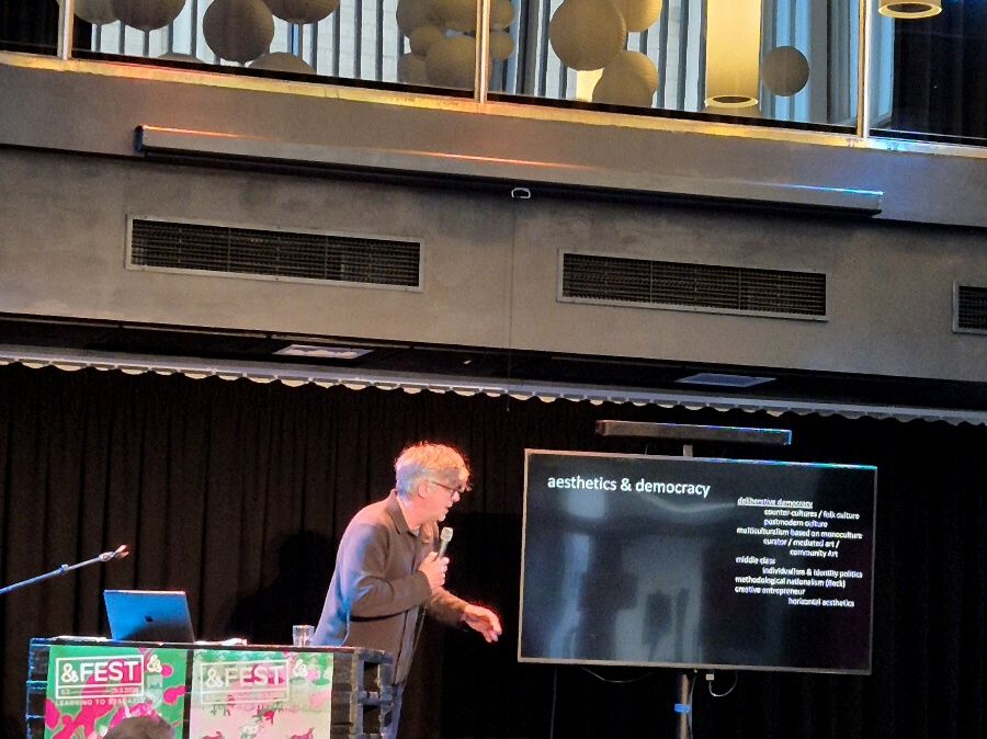 Pascal Gielen Antwerpenin yliopistossa oli puhumassa teatterifestivaalien avajaisissa.