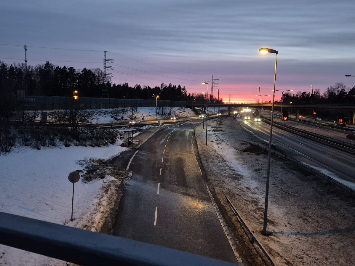 Pysähdyin ottamaan kuvan Turun moottoritien päälle, kun auringonlasku värjäsi läntisen taivaan,